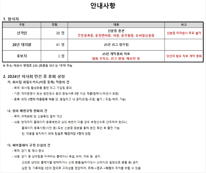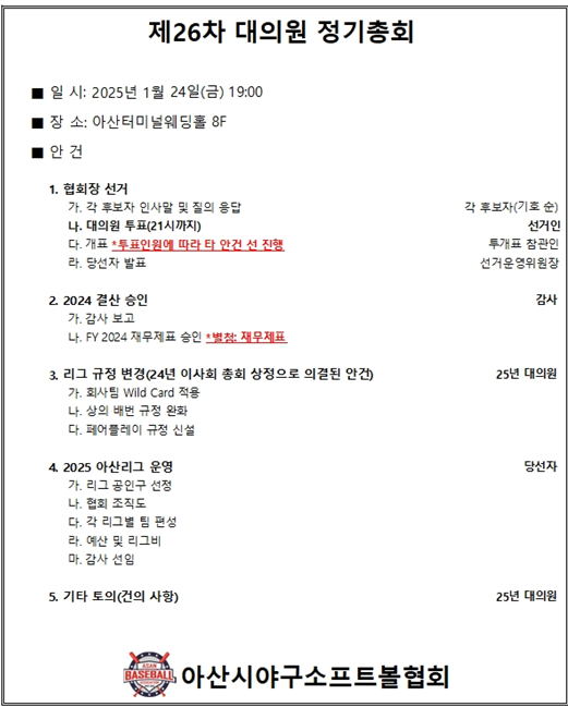 25년 아산시 야구 소프트볼협회장 후보자 등록공고
