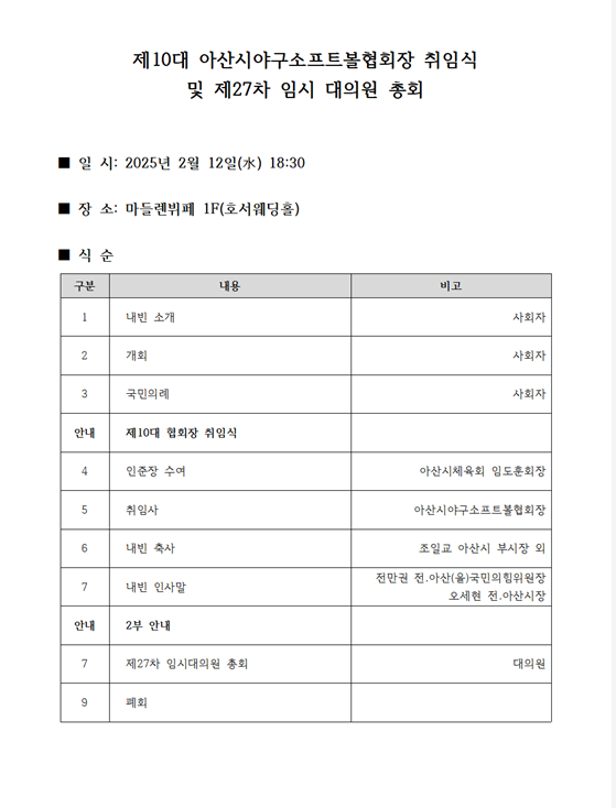 제 10대 아산시 야구소프트볼 협회장취임식및 임시총회