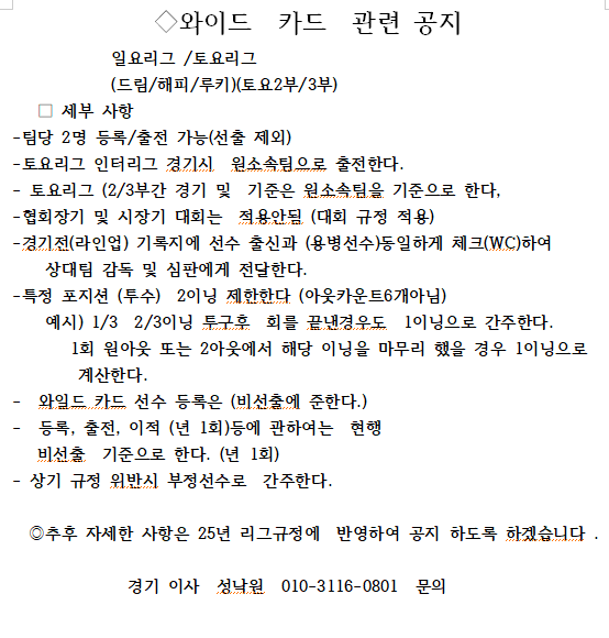 안녕하십니까? 김태훈 입니다. 리그 개막및 와일드 카드 관련 공지
