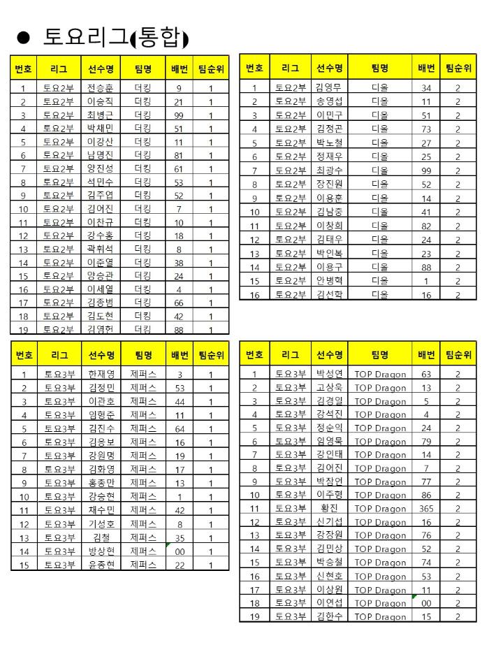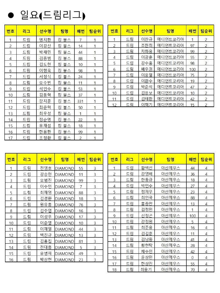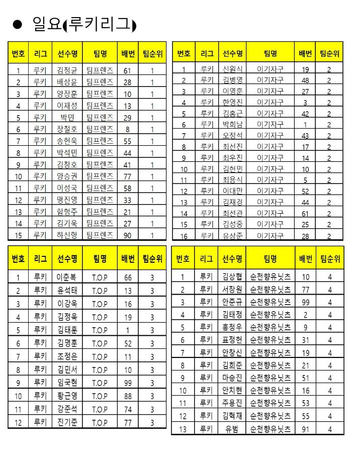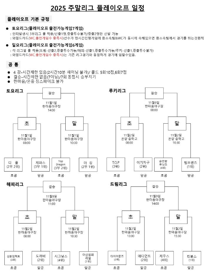 2025 주말리그(토,일) 플레이오프(팀,선수) 공유