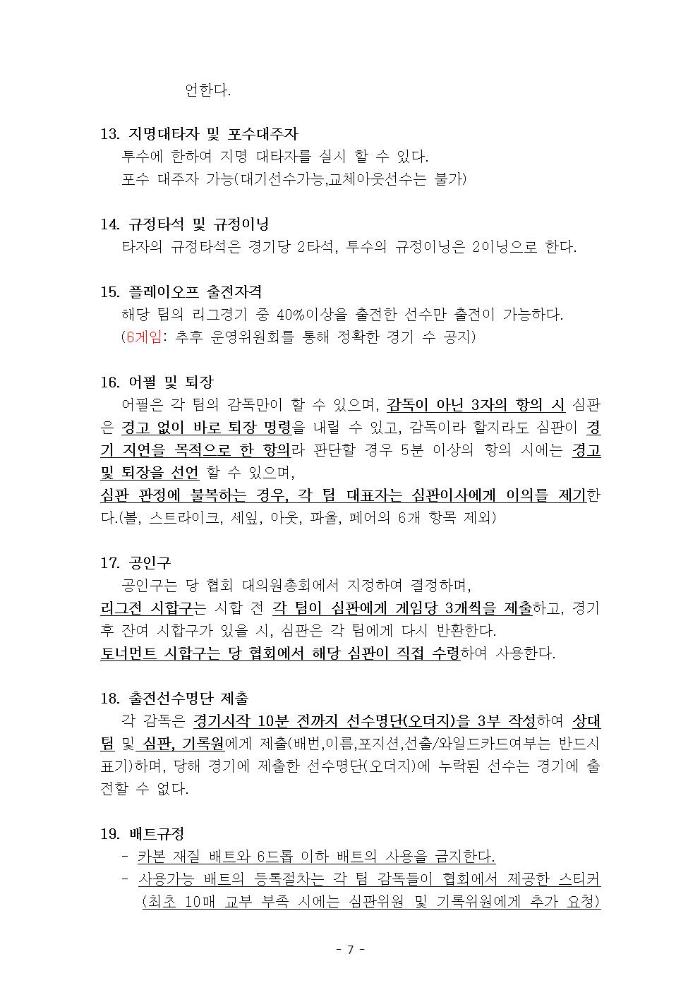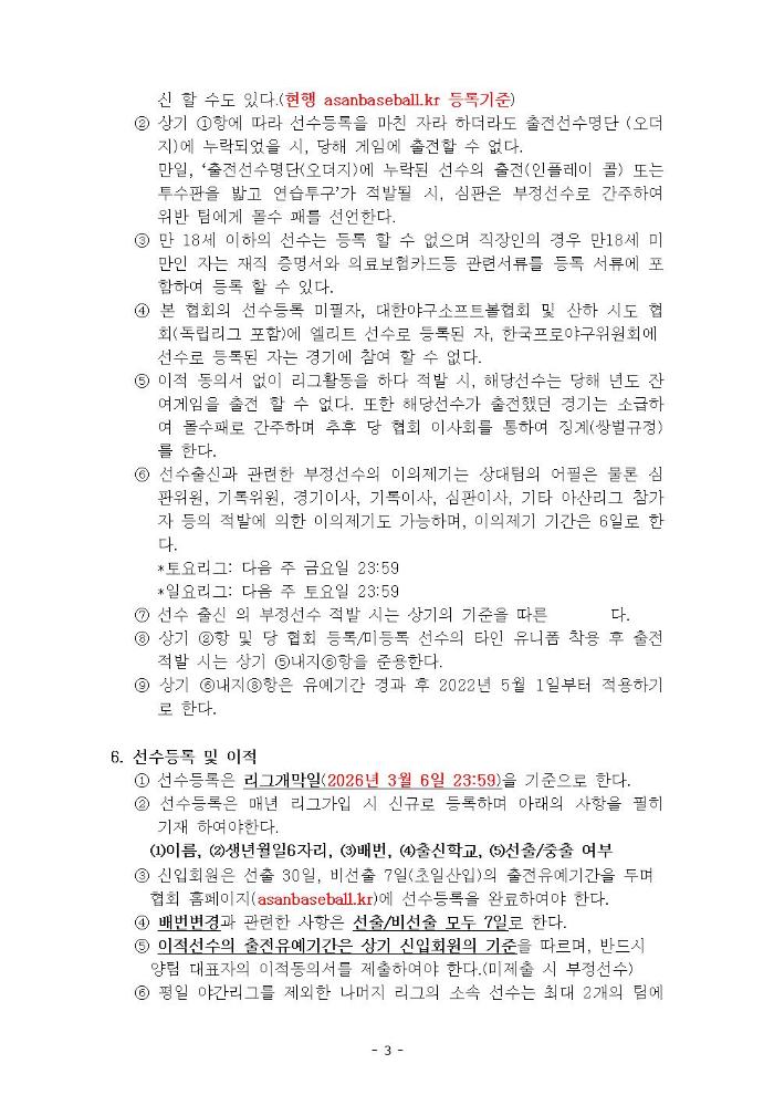 아산시야구협회 규정 공지합니다 문의사항 있으시면 연락 부탁드립니다 사무장 한동규 : 010-9413-4334 경기이사 성낙원 : 010-3116-0801
